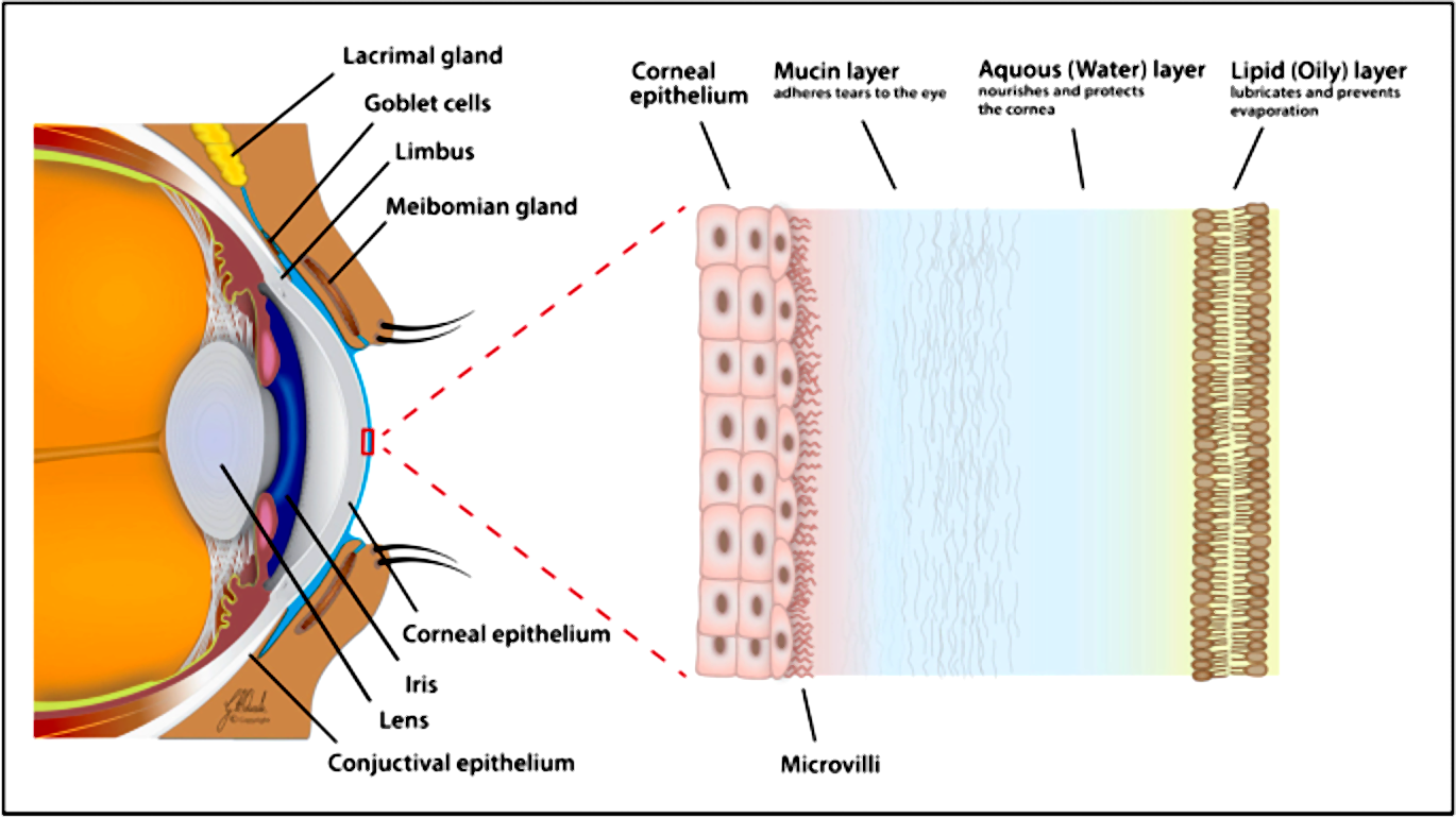 Tear production is not a simple process; it depends on a delicate system called the tear film, which has three layers. The outer oil (lipid) layer prevents evaporation, the middle water (aqueous) layer provides moisture and nourishment, and the inner mucin layer helps tears spread evenly across the eye. When these layers are balanced, the eyes remain comfortable and responsive.