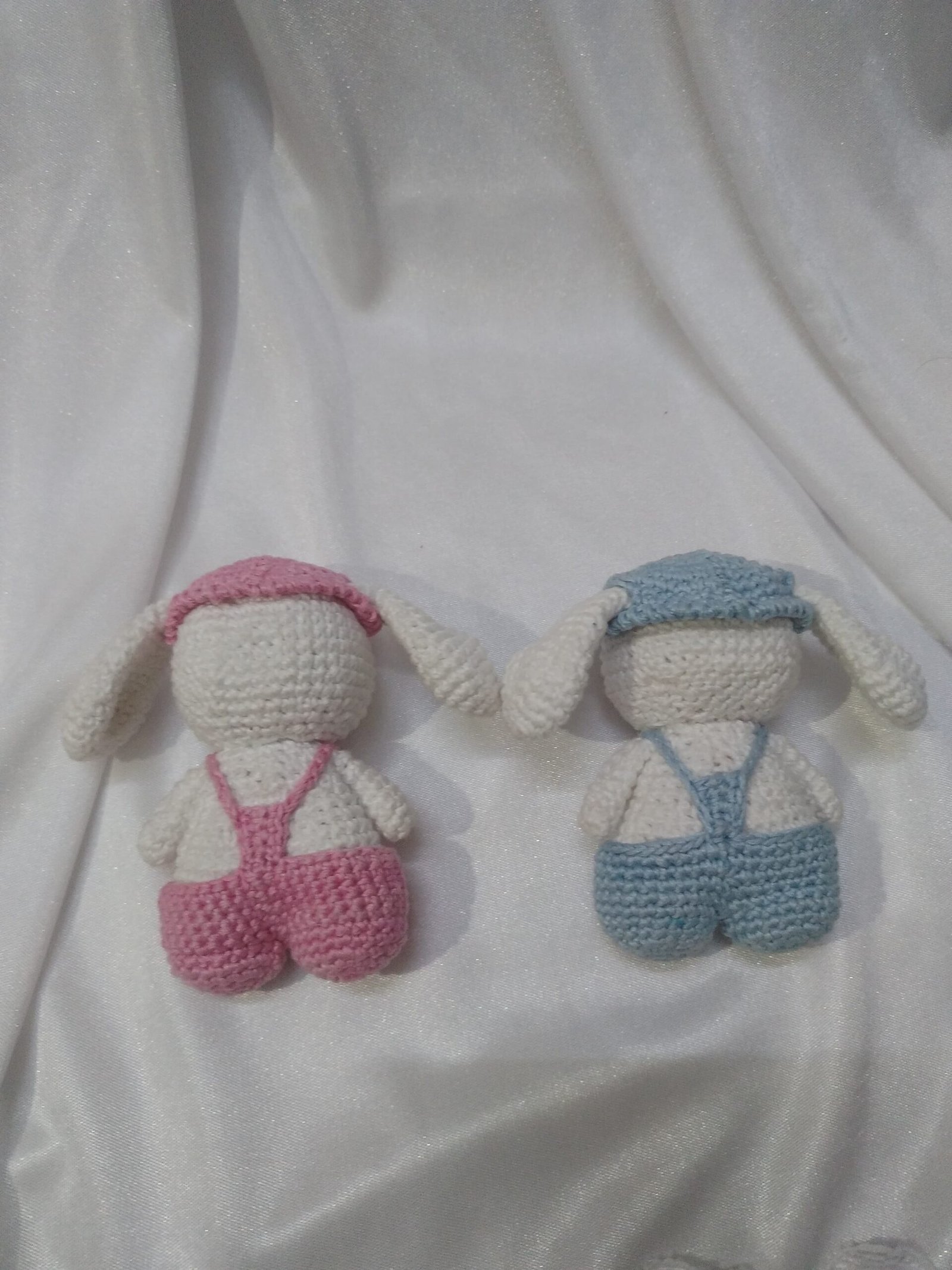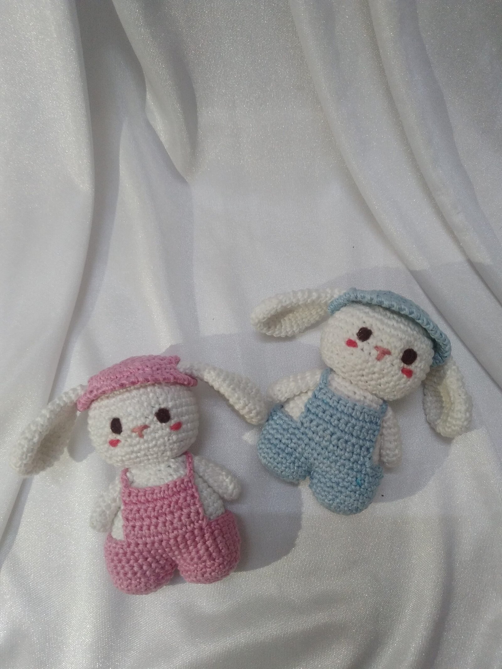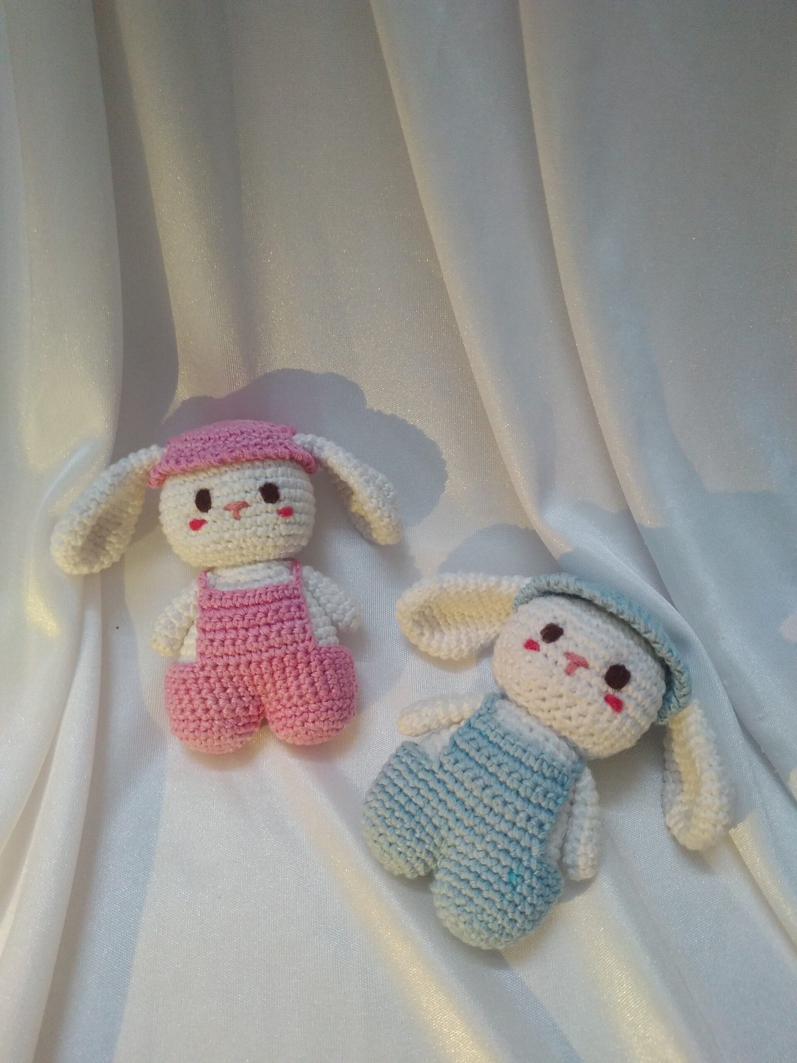 Crochet Cute Pair of Bunnies, filled with synthetic wool and made from cotton wool thread