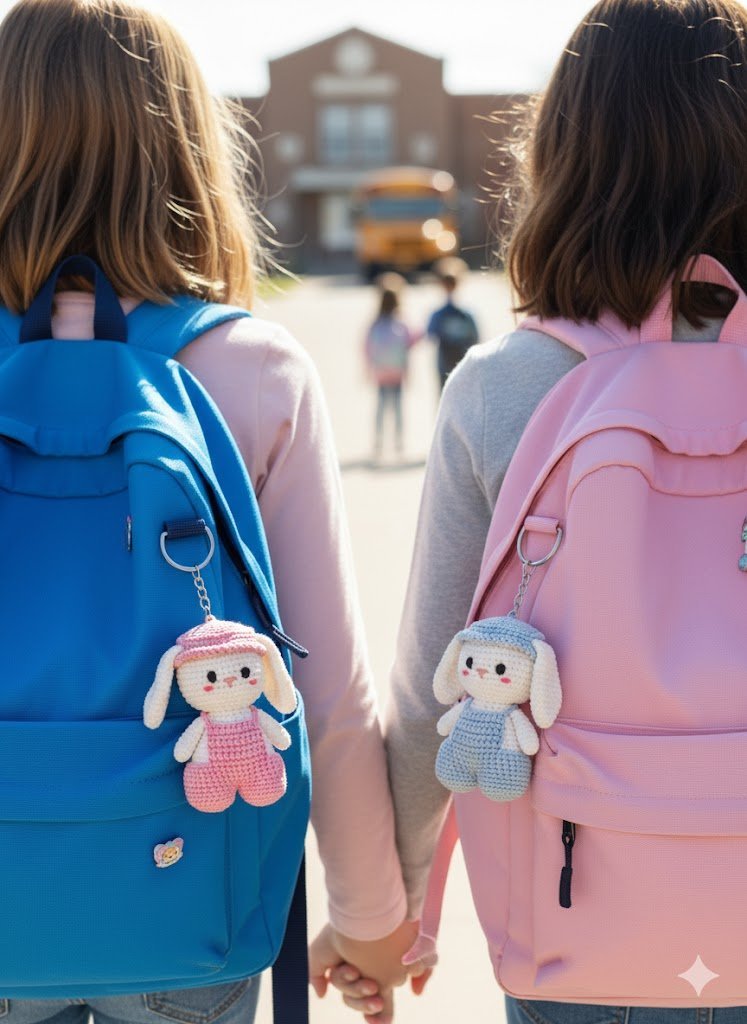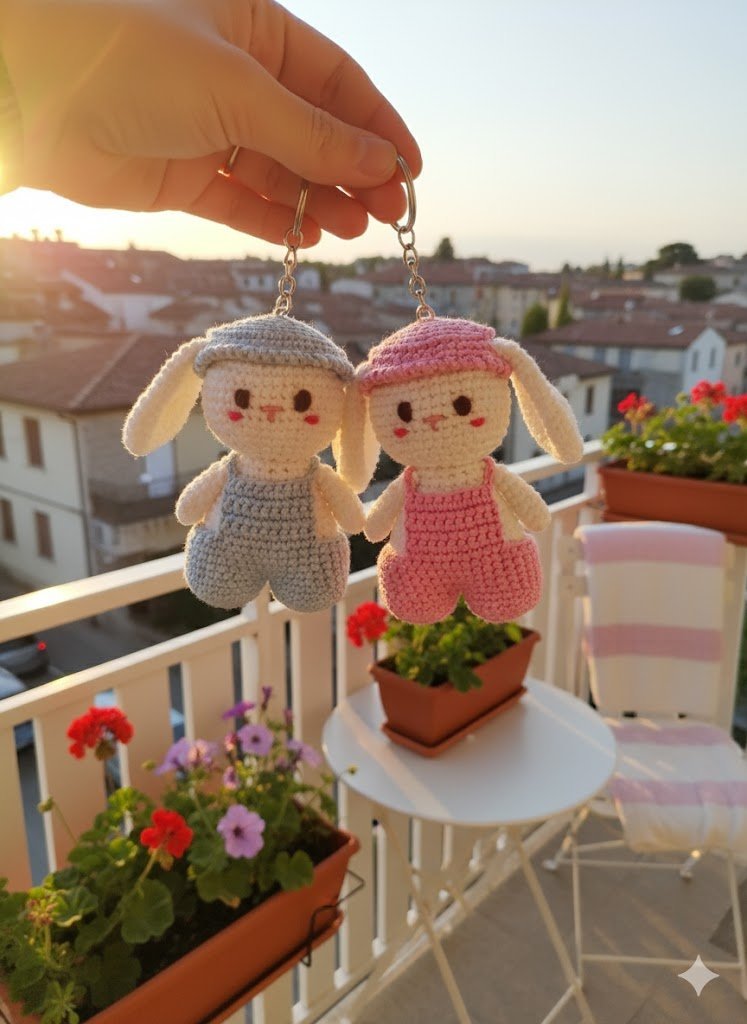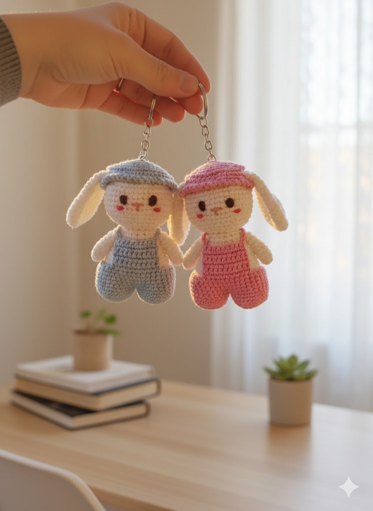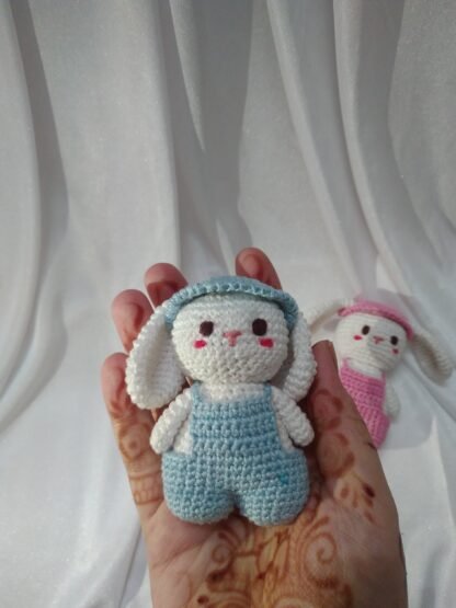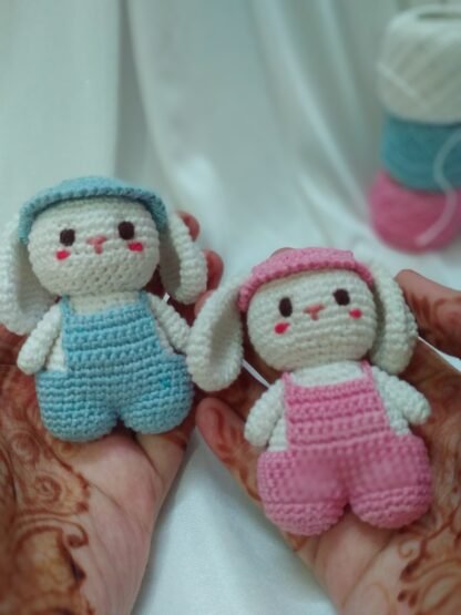 Crochet Cute Pair of Bunnies, filled with synthetic wool and made from cotton wool thread